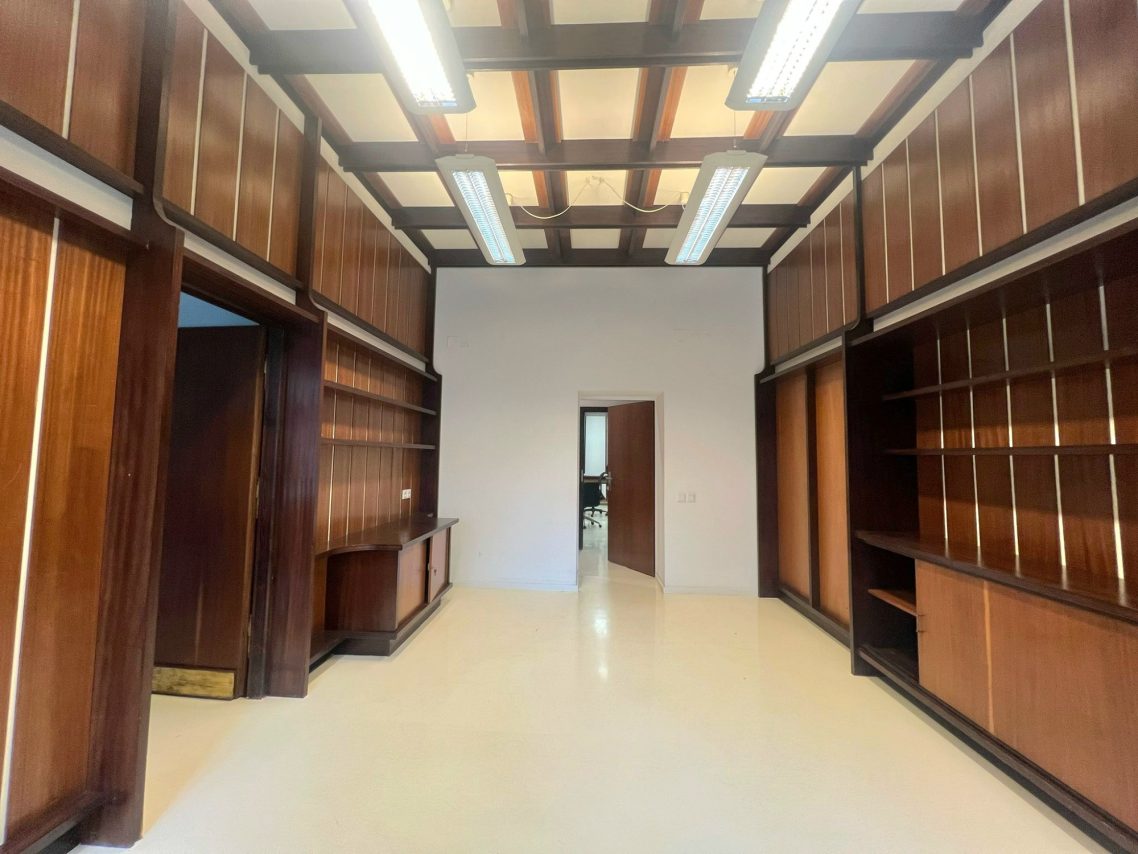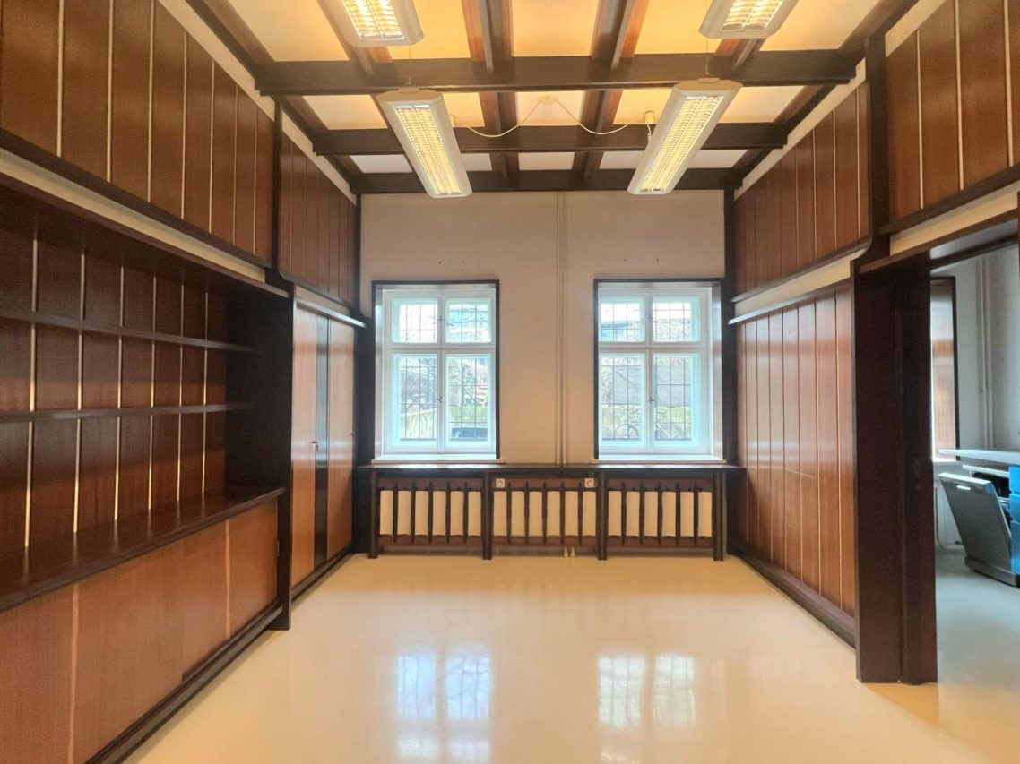 Die beiden hellen Haupträume lassen sich problemlos an individuelle Bedürfnisse anpassen. Ob klassische Bürolandschaft, Atelier oder Beratungsraum – hier sind verschiedene Konzepte realisierbar.