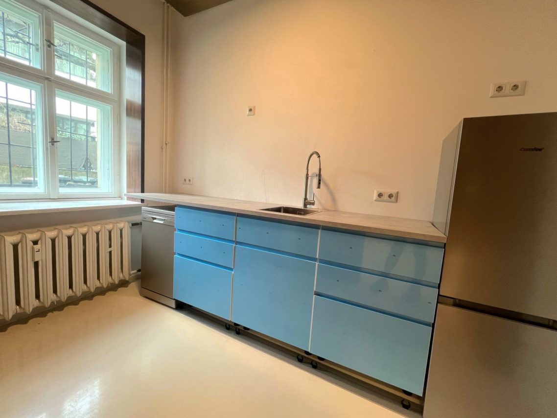 Die Einheit erstreckt sich über ca. 70 m² und umfasst zwei lichtdurchflutete, gut proportionierte Räume, die sich je nach Bedarf individuell anpassen lassen. Ergänzt wird das Angebot durch eine moderne Einbauküche und ein praktisches Duschbad, sodass Komfort auch im Arbeitsalltag nicht zu kurz kommt.